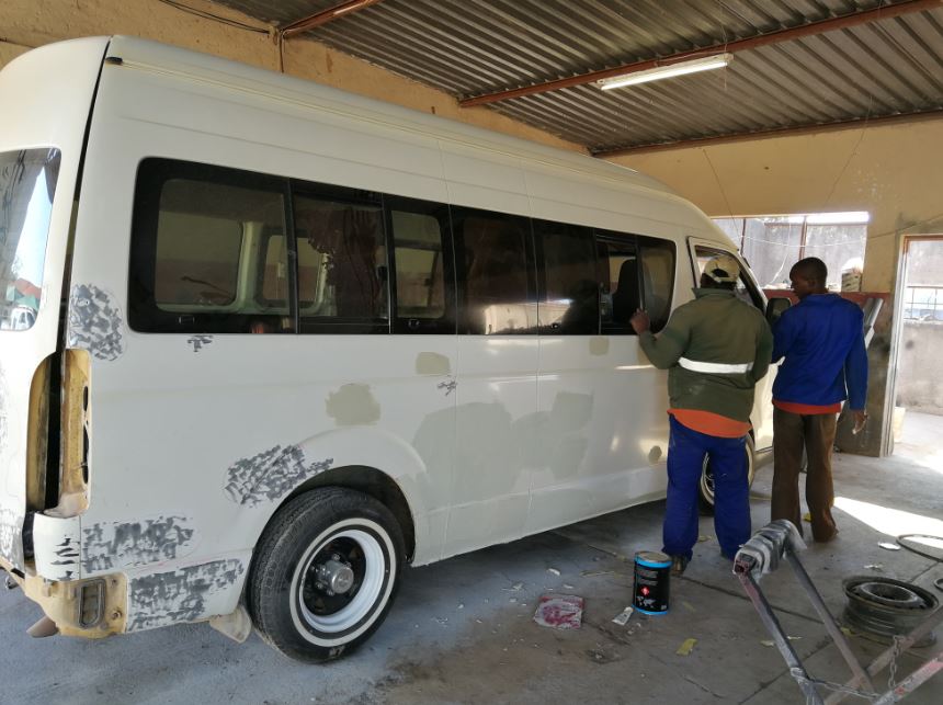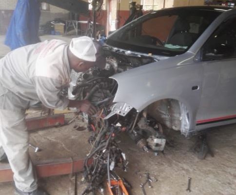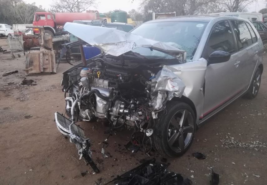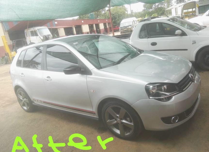 Polo Vivo involved in a head on crash awaiting panelbeating.